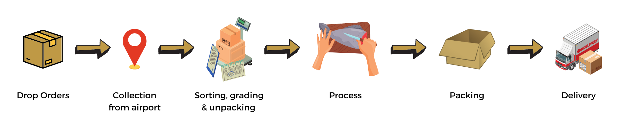 All port deliveries are then unpacked, checked, graded and stored in low temperatures to maintain freshness.